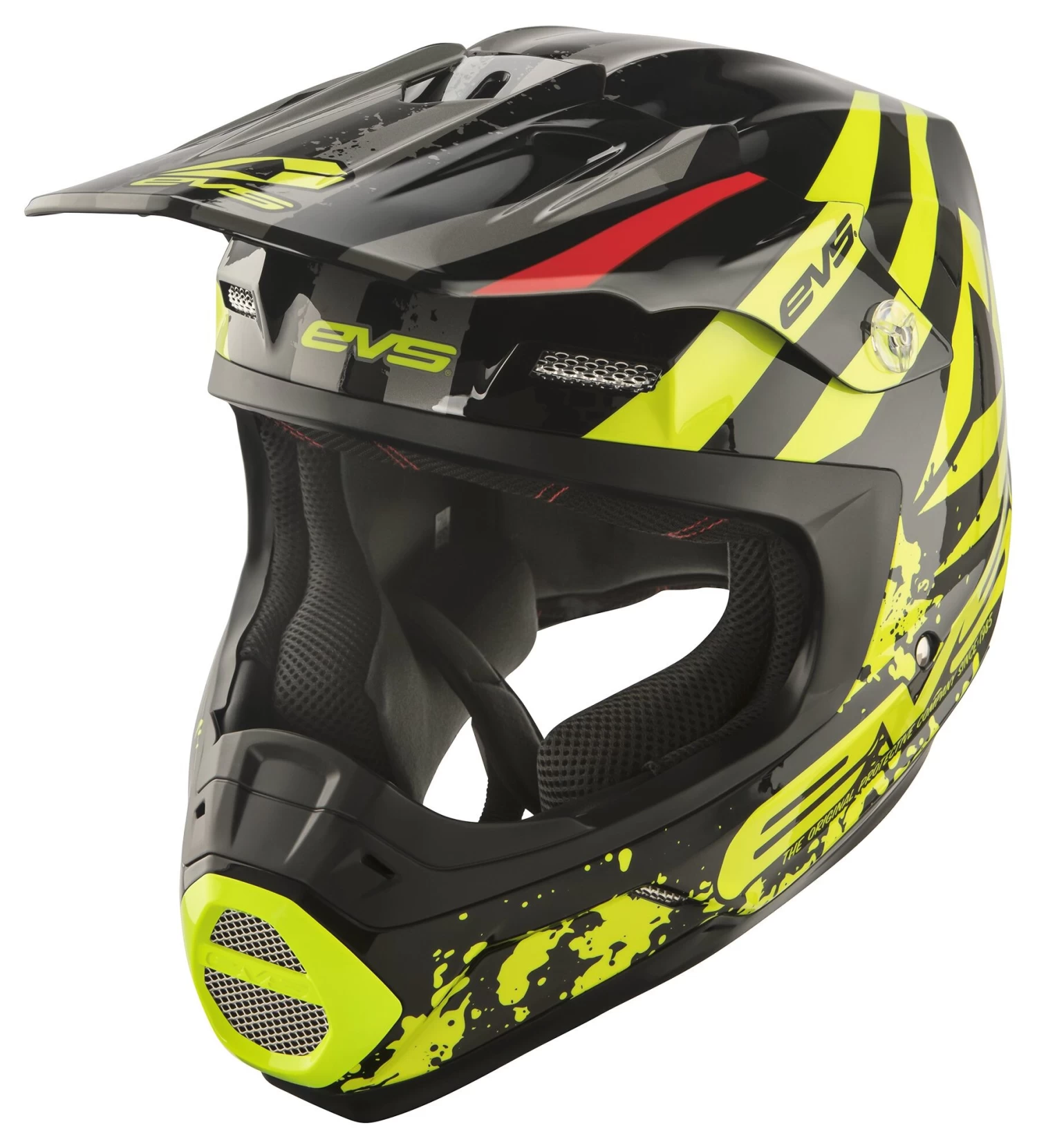 The EVS T5 Helmet is constructed from a lightweight polycarbonate shell with oversized intake and exhaust ports for maximum airflow. The EPS liner is Eject compatible and features ventilation channels for increased breathability.