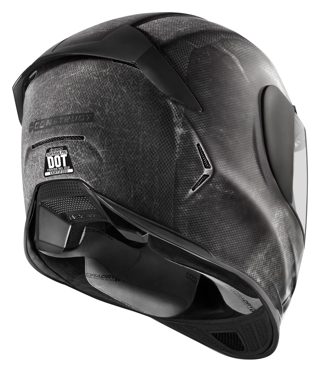 The dramatically reduced shell profile, comprised of aerospace-grade carbon fiber (FRP) features a track-recognized ECE certification. Precision assembly techniques further this dedication to mass reduction, allowing Icon to craft a helmet that is exceptionally light and peerlessly outfitted. Internally, the traditional three-piece liner has been upgraded to a five-piece liner, providing a greater amount of fitment combinations for each unique head shape. Crown, lateral, fore and aft padding components allow for a possibility of 27 fitment combinations in a single shell, double that of the Icon Airframe’s competitors.